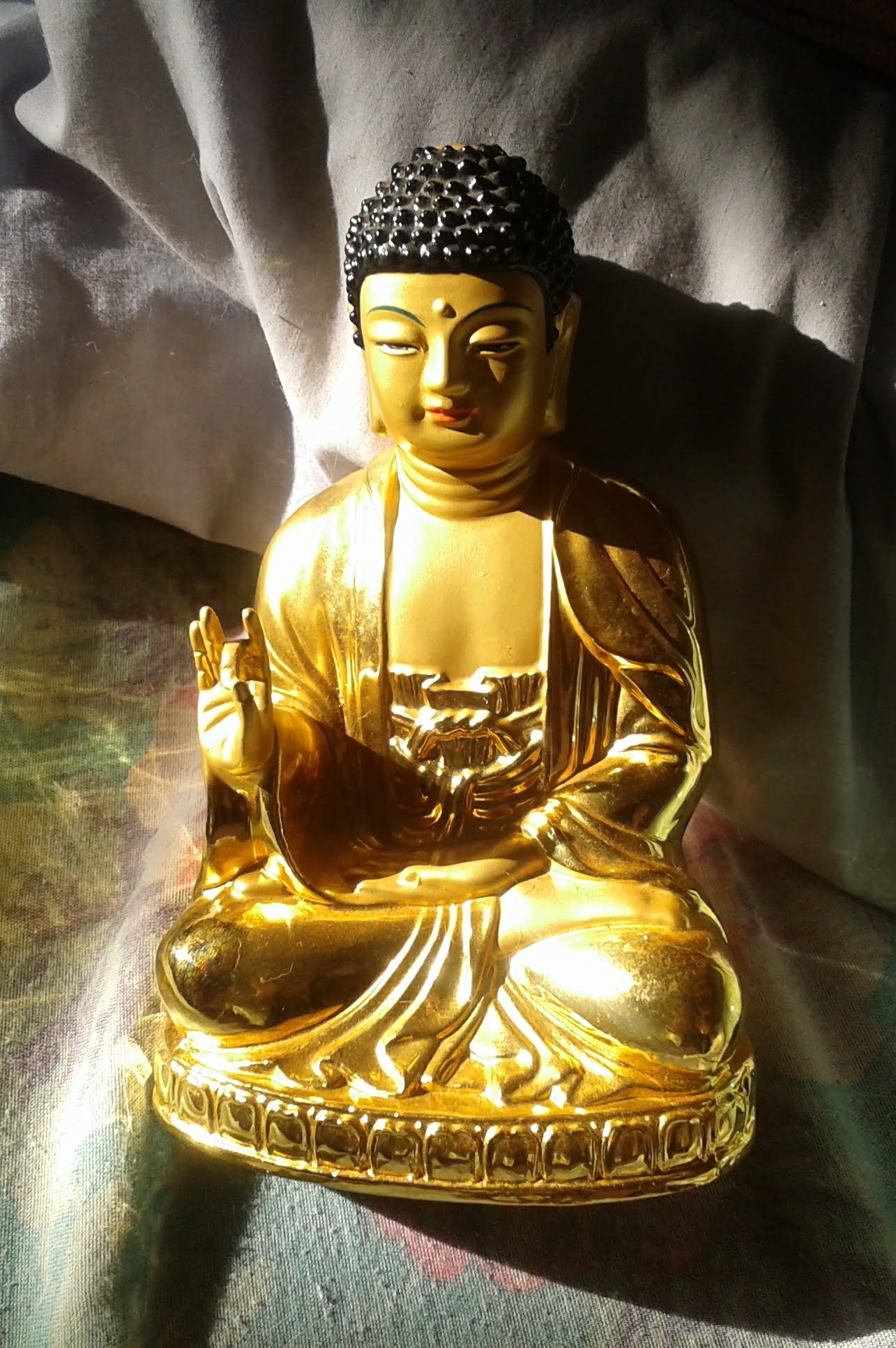We took a special bus to the top of Sokkuram Mountain first of all. The bus went extremely fast up a winding road at the edge of cliffs all the way up. At the top, there was a nice view of all of the mountains surrounding this area. There was a huge traditional building also. Everyone had to take a long hike through a wooded path from there to get to the grotto. I knew from reading my Lonely Planet book that there were no pictures allowed and that the buddha was behind glass. The whole experience was wonderful in spite of those things. It was probably a dollar for the bus and I don’t think there was a fee to see the buddha.